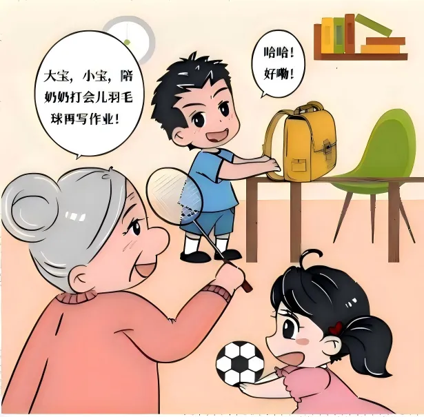 漫画里的哥哥大宝就是“陀螺小孩”,明明只是小学生,每天却要做3小时的课外题,睡眠不足严重影响了他的精神状态。奶奶对此视而不见,认为“只有多做题,才能考上重点学校”,爸爸妈妈则不这样想,认为要保障孩子运动和休息时间,劳选结合才能提高学习效率。健康作息后,哥哥成绩不降反升,奶奶也转变了想法。