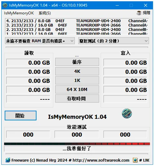 IsMyMemoryOK 内存检测工具 v1.33 多语便携版,电脑内存故障排查专用