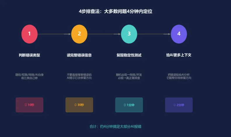 跟 AI 工具打交道多了,我总结出一套自己处理错误的思路: