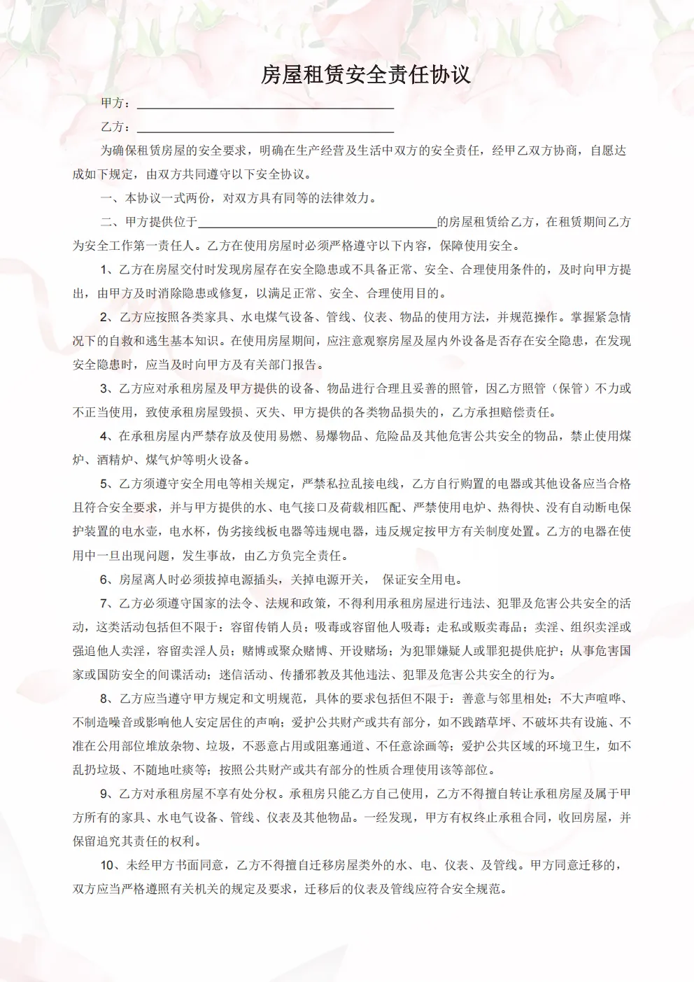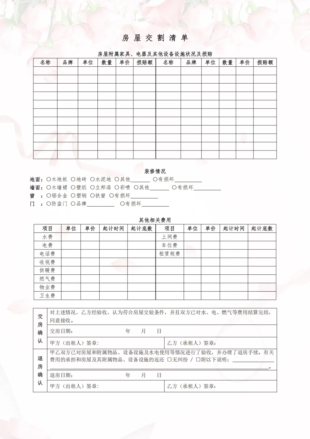 2026房屋租赁合同模板范本电子版(可下载可打印)-(有利于出租方)房屋交割清单/家具家电清单/租赁安全责任协议/押金条