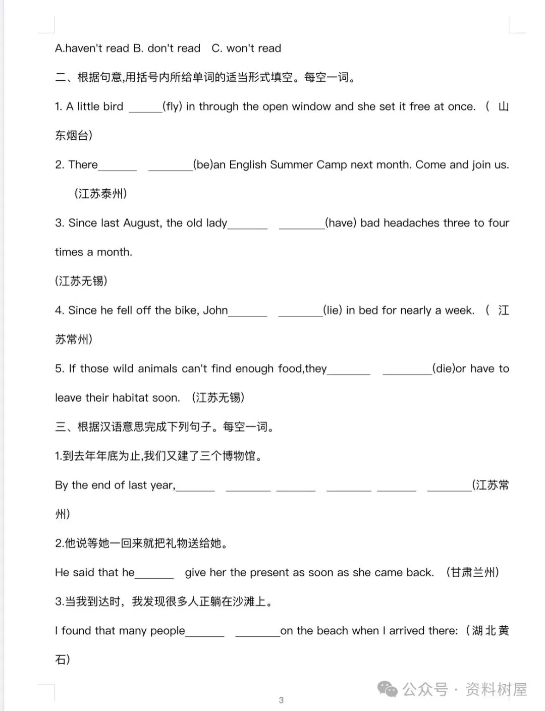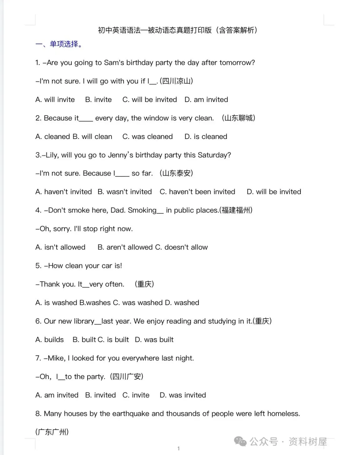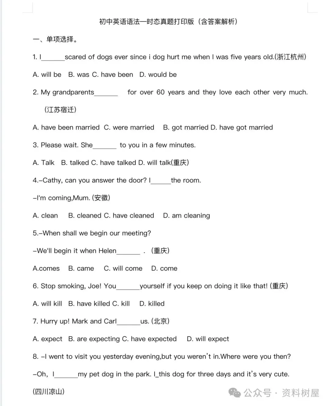 初中英语语法练习真题及答案解析(电子版可下载)