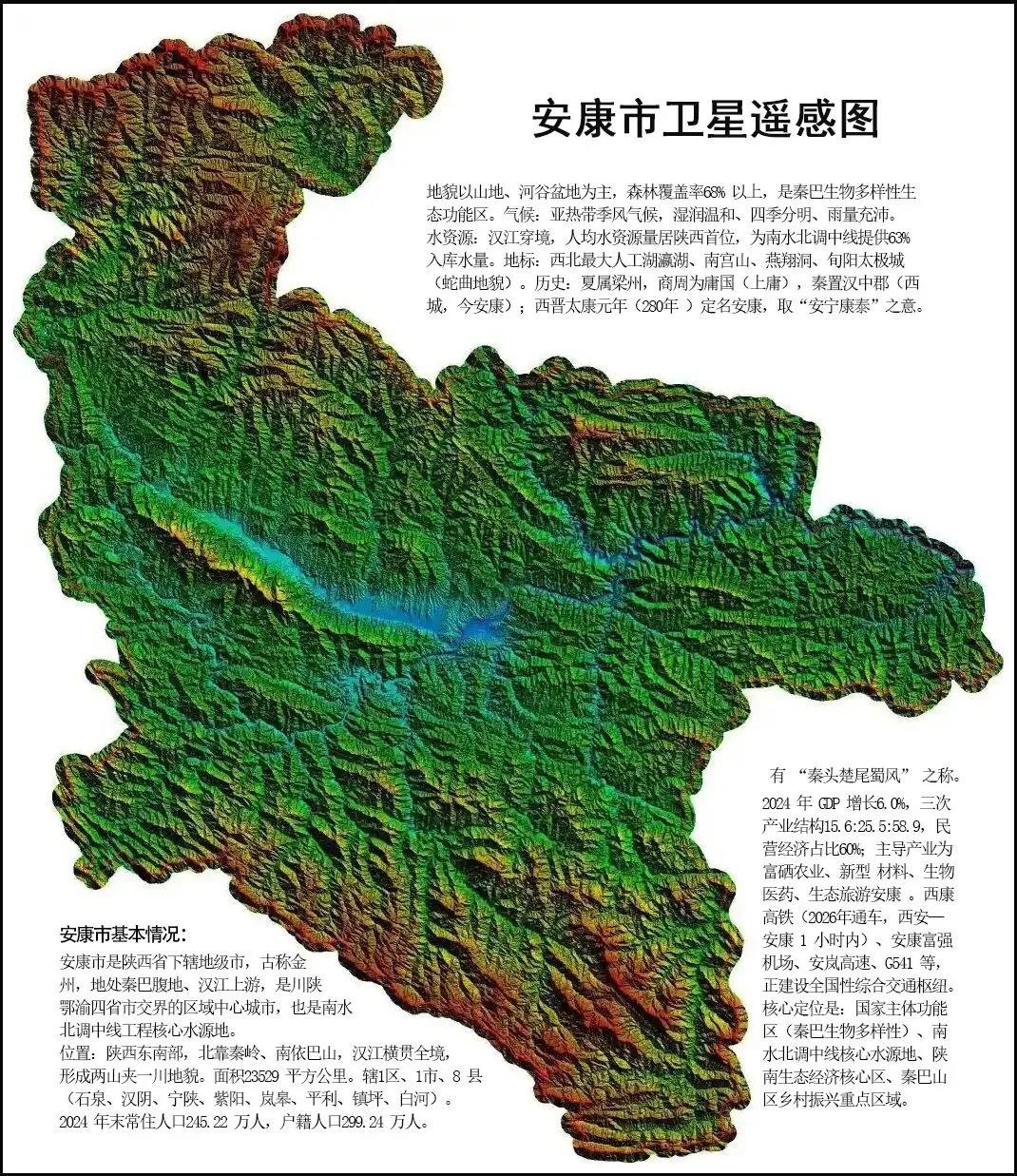 3.交通辐辏,文化交融,万家灯火即天下。安康地处川、陕、鄂、渝四省市结合部,是连接西北、华中与西南地区的重要节点。境内已形成铁路、公路、航空、水运四位一体的综合交通体系。六条高速公路(G5、G7011、G65、G4213、G69、G6911)在此交汇,安康机场开通国内十余条航线,汉江安康段340公里航道达到高等级通航标准。