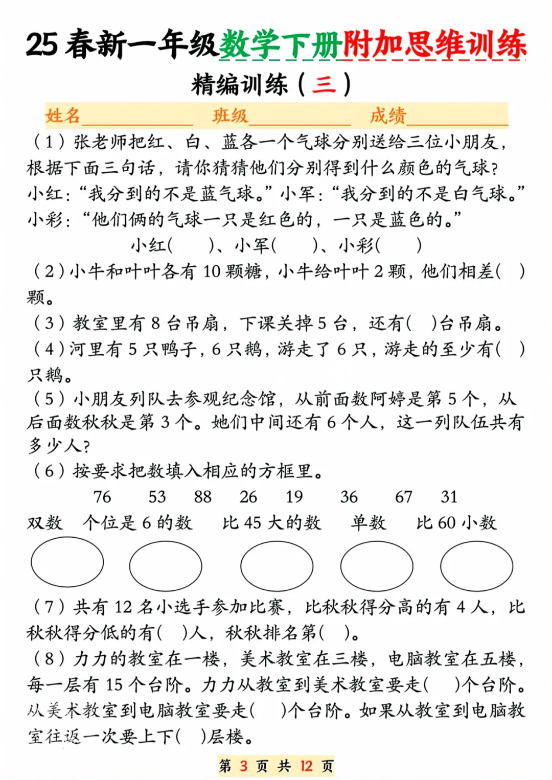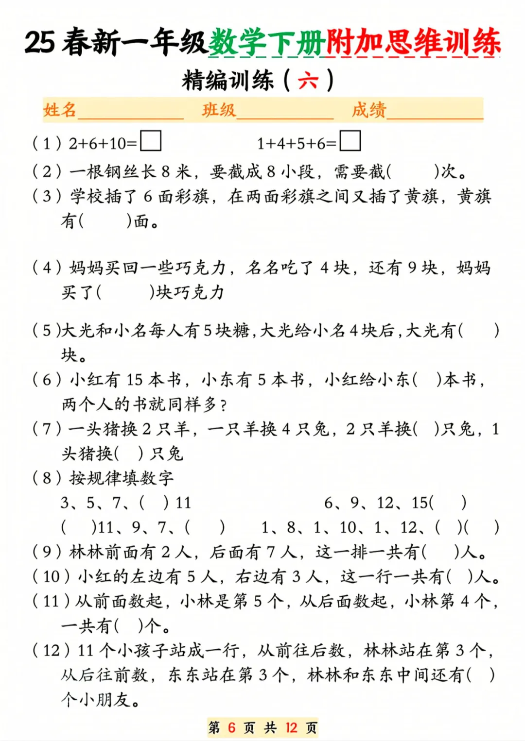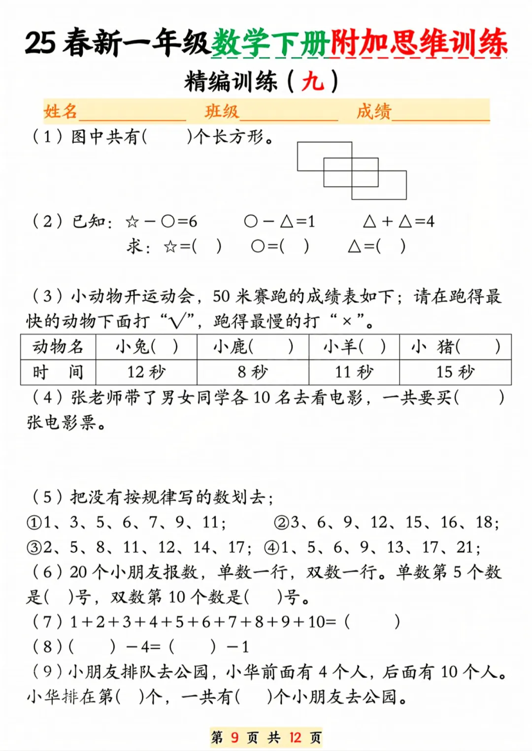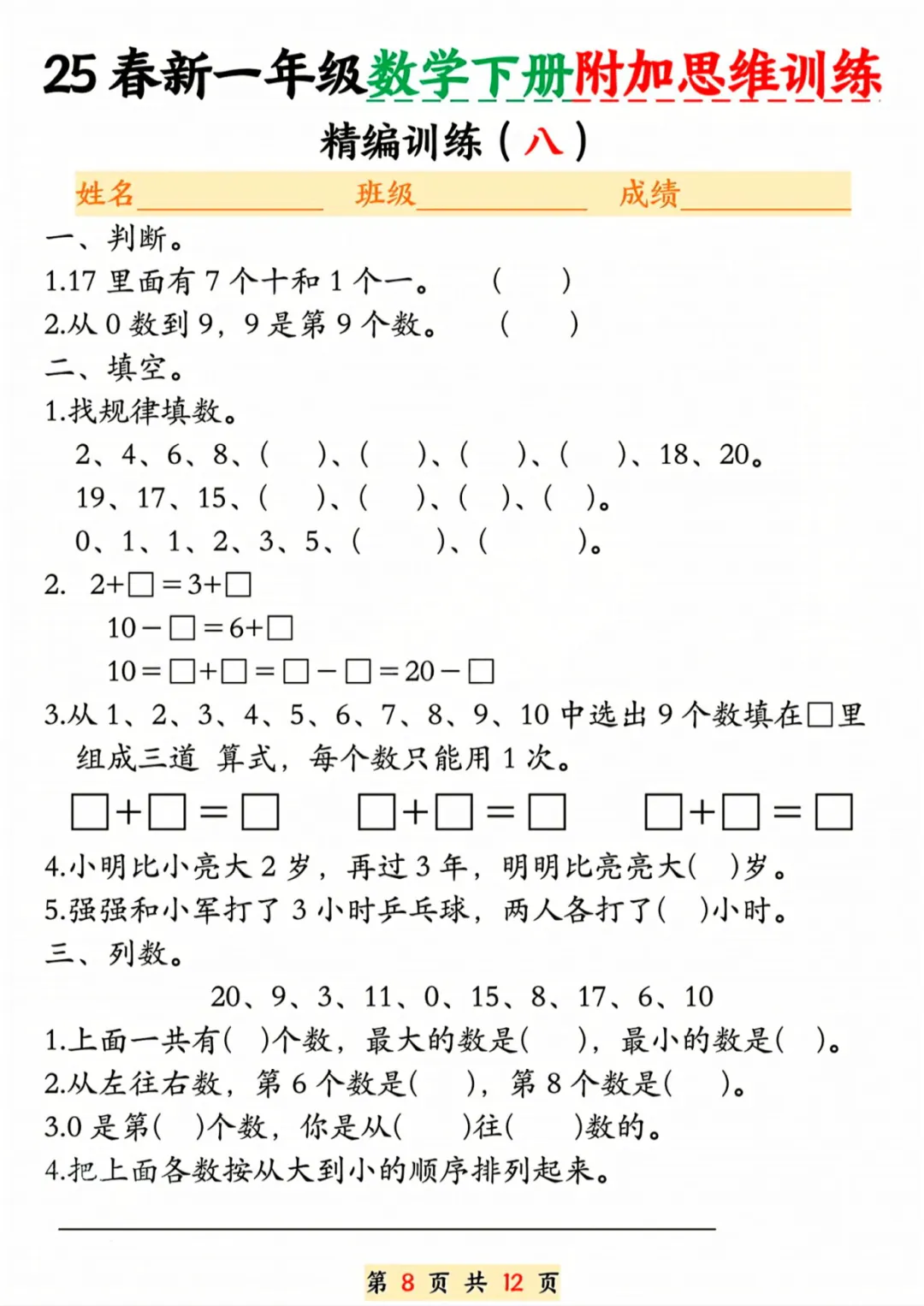 一年级下册数学附加思维训练题,电子版可打印 ↓↓↓更多学习资料点击下方小程序 ↓↓↓ 版面有限,不过多展示 需要直接点下方领取 完整电子打印版领取方式 ▲点击上方 儿童英语口语 在公众号消息框发送: 7438,即可领取