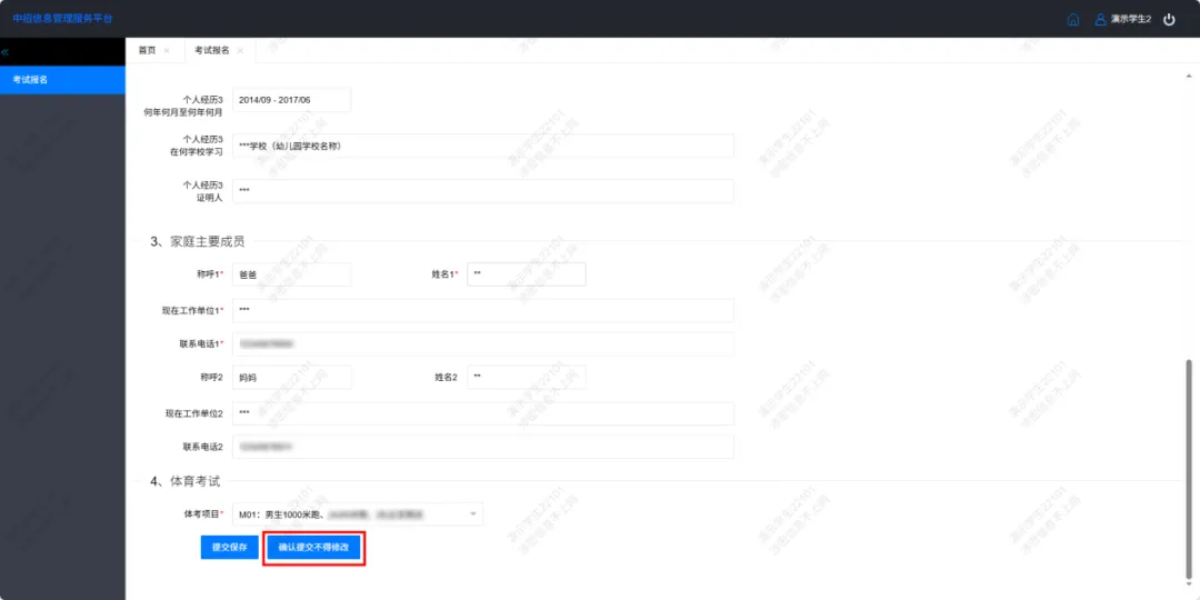 确保信息填写无误后,点击“确认提交不再修改”。