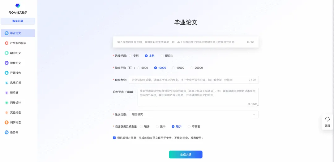 当撰写英文期刊论文时,即便只输入中文思路,它也能借助AI论文生成功能,产出符合目标语言学术规范的内容。这大大提高了论文创作的效率,让人们无需在语言转换上花费过多时间。在处理国际相关的期末论文或文献综述时,这款专业的AI论文写作工具更是表现出色。它能精准匹配对应语言的学术论文表达习惯,使得论文语法和专业表述都十分地道。而且,它还能自动适配学术论文的结构习惯,让使用者省去反复翻译校对的功夫。可以说,这款AI论文生成器在国际化的AI论文写作中,起到了至关重要的作用,为学术交流和研究的发展提供了有力的支持。无论是对于国内的学者走向国际舞台,还是国际间的学术合作,AI论文生成、AI写论文以及AI论文写作的便利性都将推动学术领域不断向前发展。
