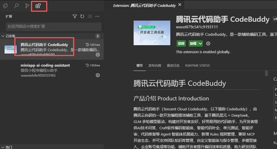 2、安装AI编程插件:CodeBuddy