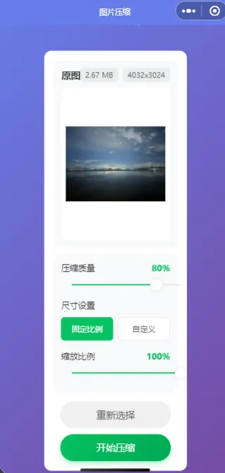 写一个微信小程序:图片压缩。可以压缩所有格式的图片。界面交互做得好看实用些。