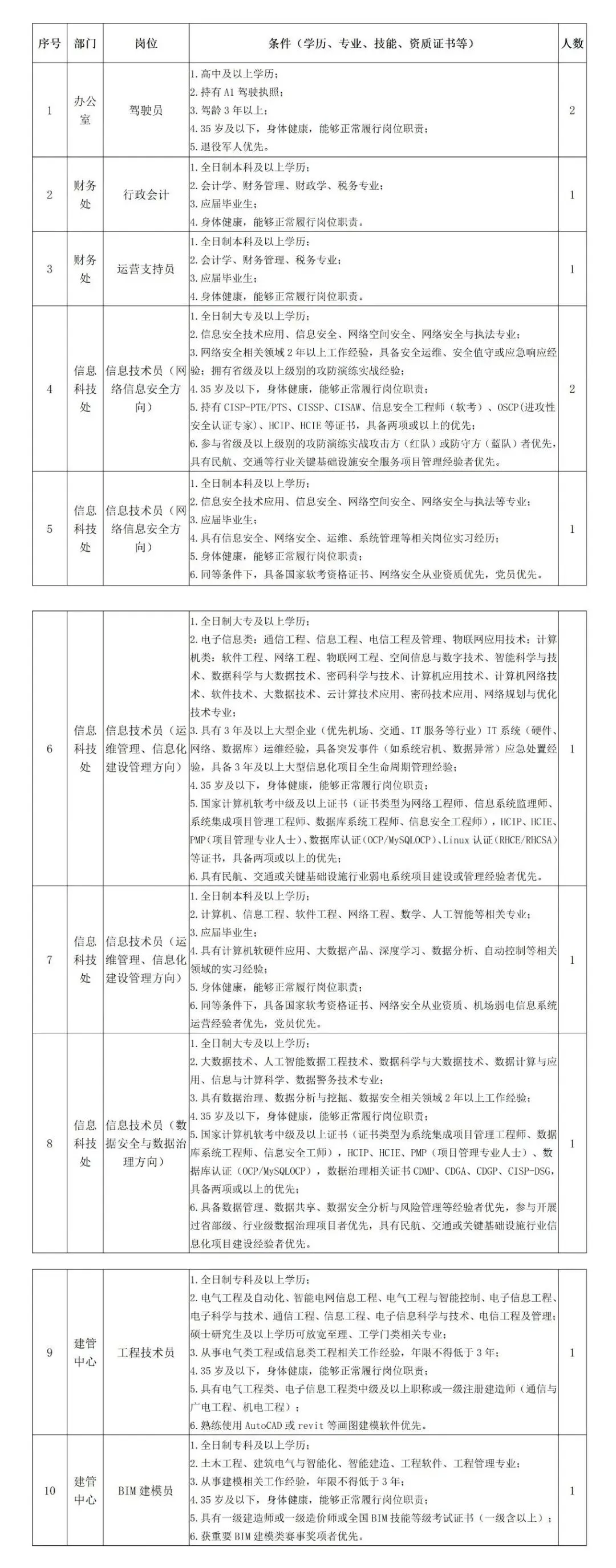 (二)岗位资格条件: