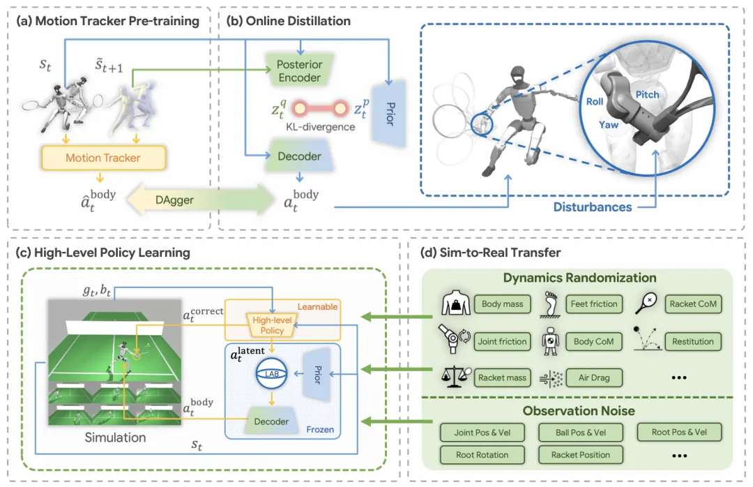 ✨ 首次提出利用不完美、碎片化的业余玩家运动数据,结合可修正的潜空间和潜动作屏障,让人形机器人在真实世界学会与人类进行多回合对打