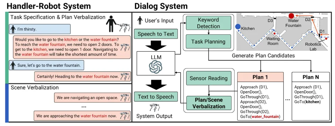 ✨ 首次将大语言模型与任务规划器结合,为机器人导盲犬赋予了规划与场景的双重语言化能力,实现与视障人士的协同决策