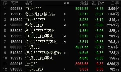 市场下跌调整中的对冲工具 今天中证2000跌幅第一(无对冲工具) 中证1000跌幅第二 中证1000股指期货 中证1000指数期权 指数及ETF期权标的 创业板指跌幅第三 今天创业板指负面贡献Top10 创业板ETF 创业板ETF期权 免责声明本文所有内容均不构成任何投资建议,也未考虑到个别特殊的投资目标、财务状况或需要。本文仅是个人看盘及独立思考的分享,不构成任何指导。投资者应考虑本文中的任何意见、观点或结论是否符合其特定状况。市场有风险,投资需谨慎。据此投资,责任自负。