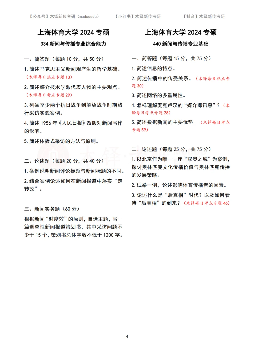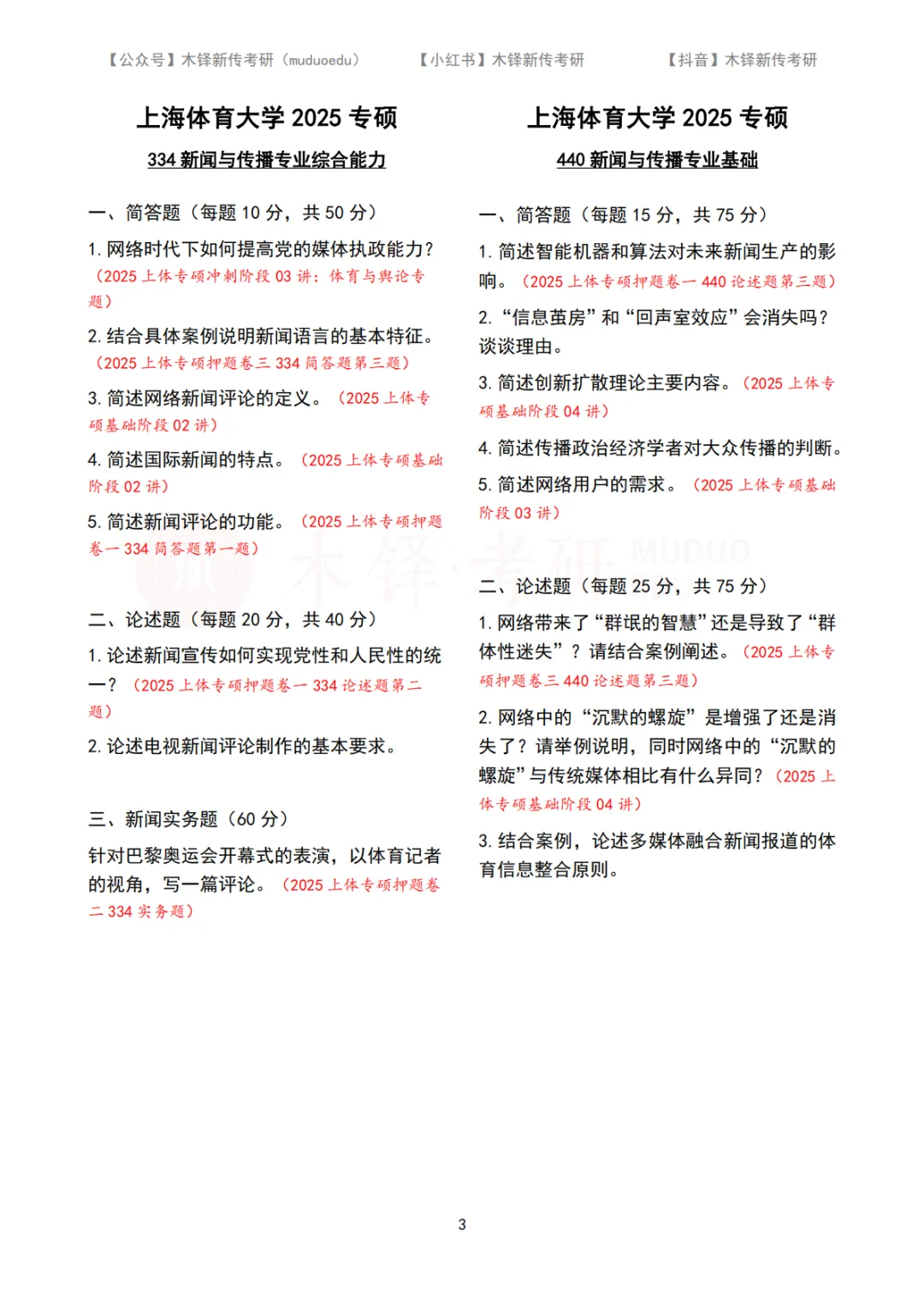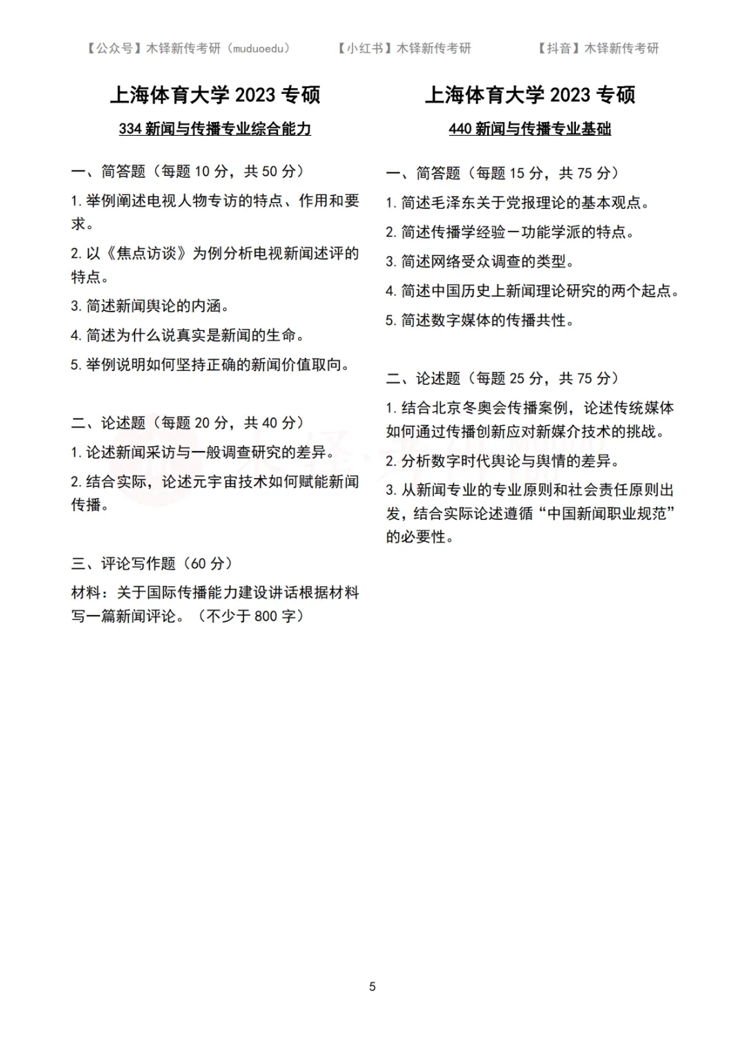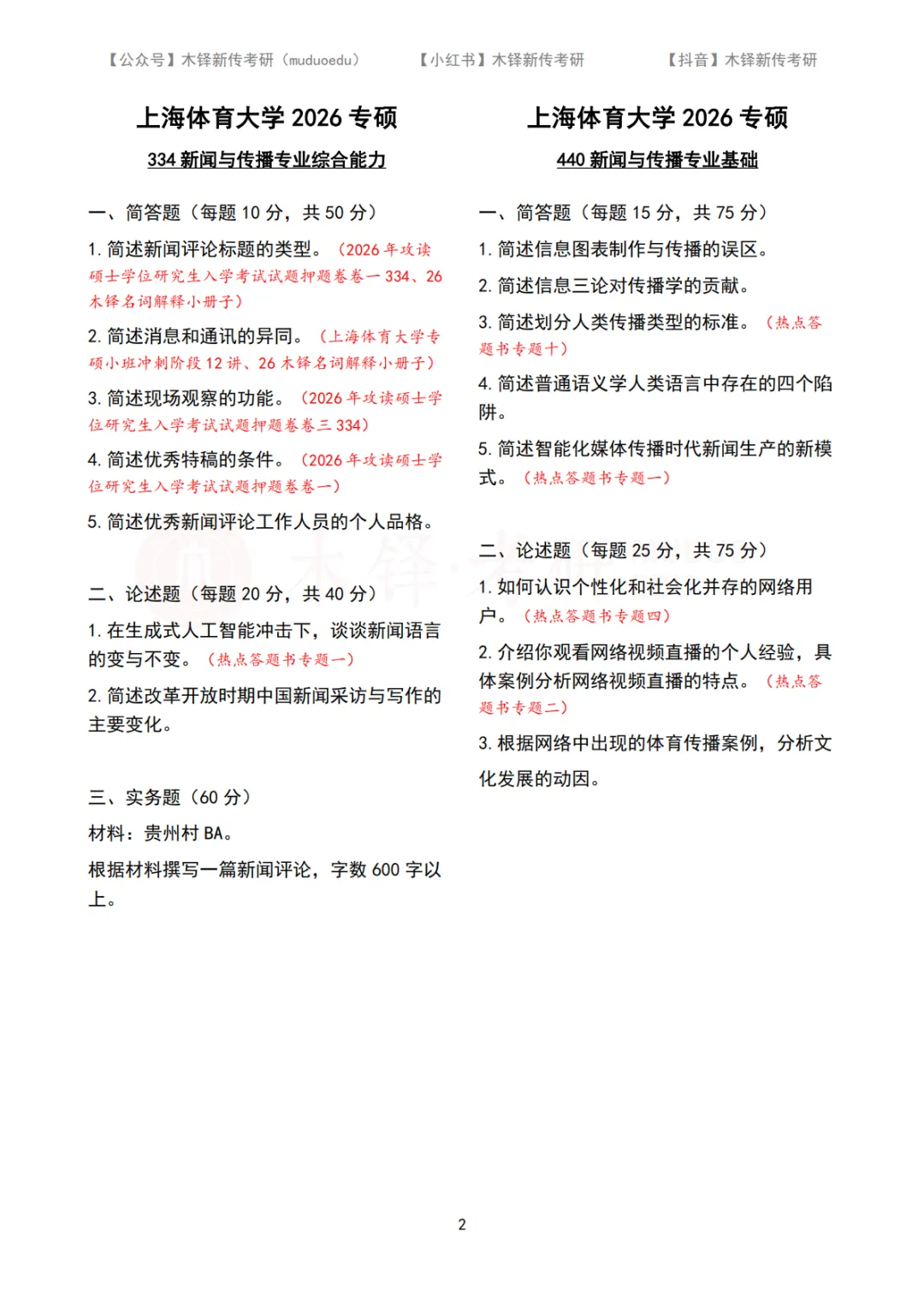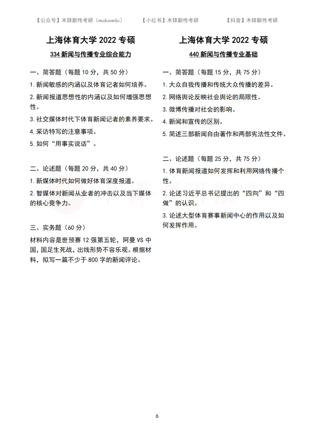 上海体育大学新传考研5年真题合集|2022-2026版 木铎新传考研真题库(2022-2026) 上海体育大学近五年真题合集 私信学姐院校名称 “上海体育大学” 获取近五年真题PDF打印版 点击链接:请扫码添加学姐/学长微信 上海体育大学2026年专硕(MJC)真题 上海体育大学2025年专硕(MJC)真题上海体育大学2024年专硕(MJC)真题上海体育大学2023年专硕(MJC)真题 上海体育大学2022年专硕(MJC)真题 |上海体育大学新传考研真题解析 |上海体育大学MJC真题合集(2022-2026) 【关联阅读】 专硕拟录取39人,学硕连续三年调剂 | 上海体育大学新传考研难度分析 【2026上海体育大学院校小班已开】