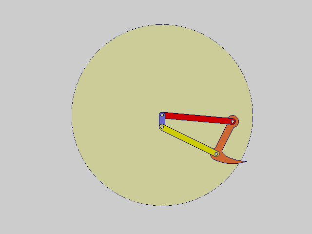 双曲柄机构中两个连架杆均可作整周旋转。利用这一特性,可以模拟犁爪所需的往复或复杂平面运动。通过合理设计两个曲柄的长度和相位,能够生成类似犁爪入土、翻土、提升的轨迹,为犁具的机械设计提供了一种有效的运动模拟方案,有助于优化犁爪的运动学和动力学性能。