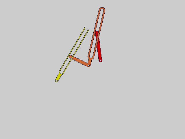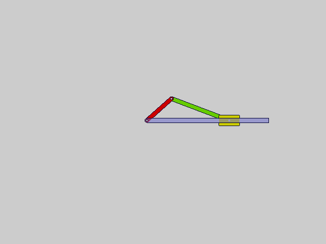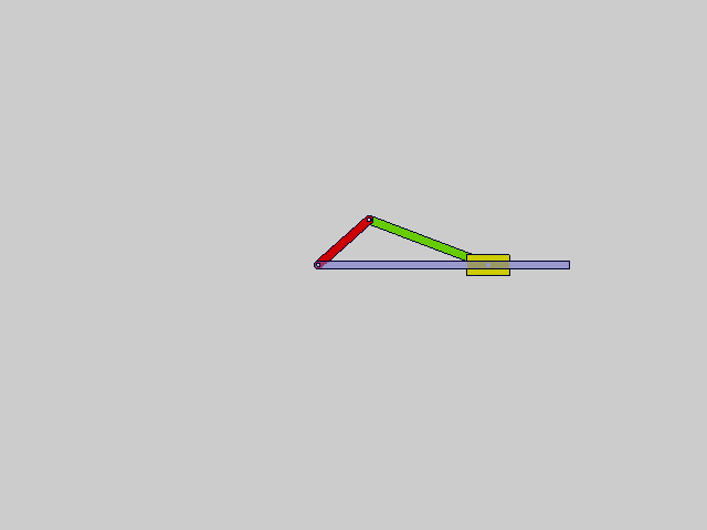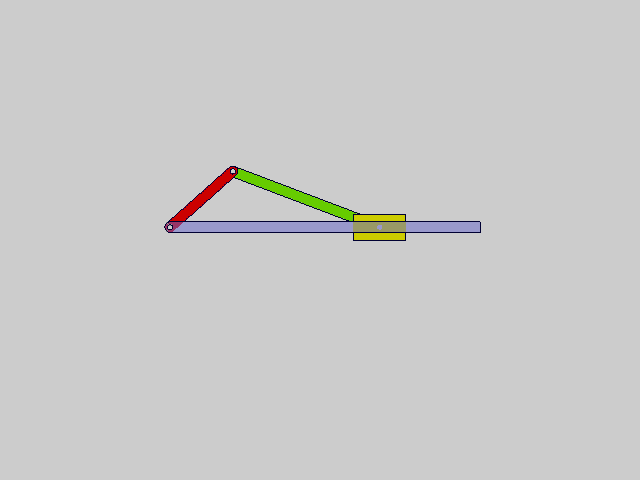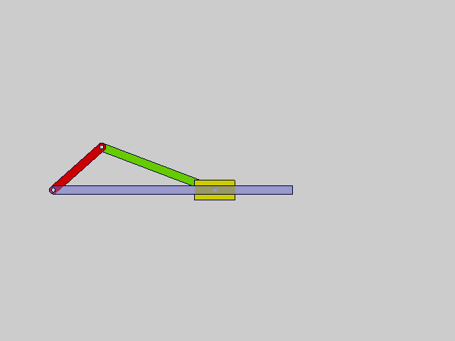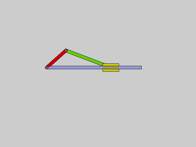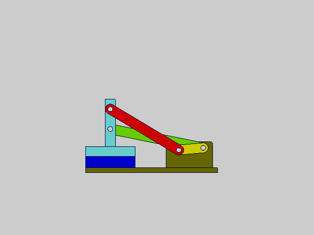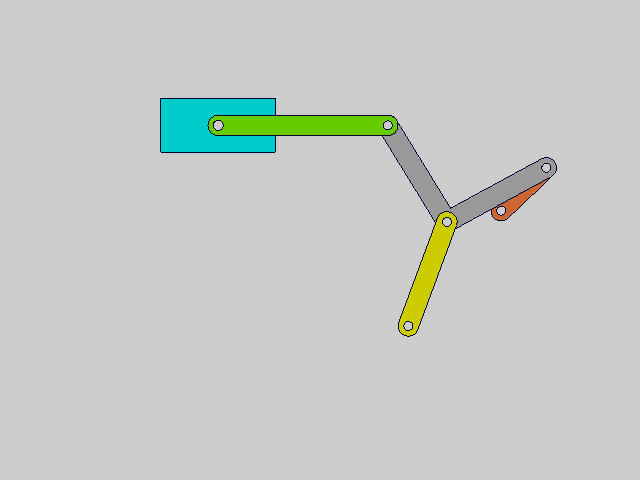 这是将曲柄摇杆机构和摇杆滑块机构串联使用的一种复合机构。曲柄摇杆将旋转转为摆动,这个摆动再作为输入驱动摇杆滑块机构,最终输出滑块的直线运动。这种串联可以放大位移、改变运动规律或实现更复杂的动作,常见于一些需要长行程直线输出的设备中。