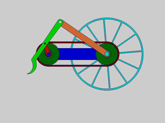 这是一种模拟人力划桨动作的机械机构,将旋转运动(如电机的输出)转换为桨叶的往复划水运动。通常由曲柄摇杆、摇杆滑块等机构串接组合而成,使桨叶能实现入水、划水、出水和回桨的完整动作循环。应用于小型船只的机械推进或娱乐设施中。