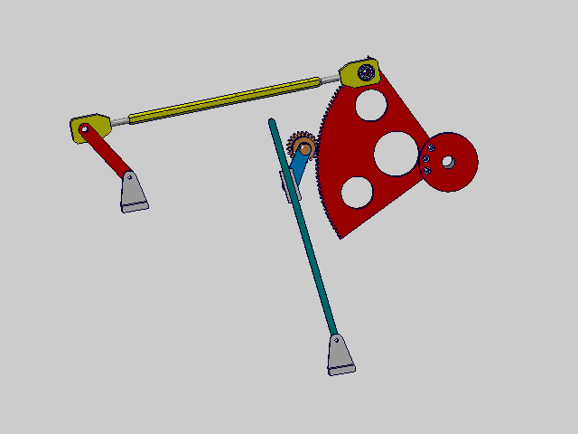 通过齿轮副将曲柄摇杆机构和摆动导杆机构连接起来,可以精确控制两者之间的运动关系和相位。齿轮传动能保证同步,并可通过齿数比改变速度或放大扭矩。这种设计使得复合机构的运动更加精确、可靠,例如应用于汽车雨刷器中,确保雨刷摆角与速度符合要求。