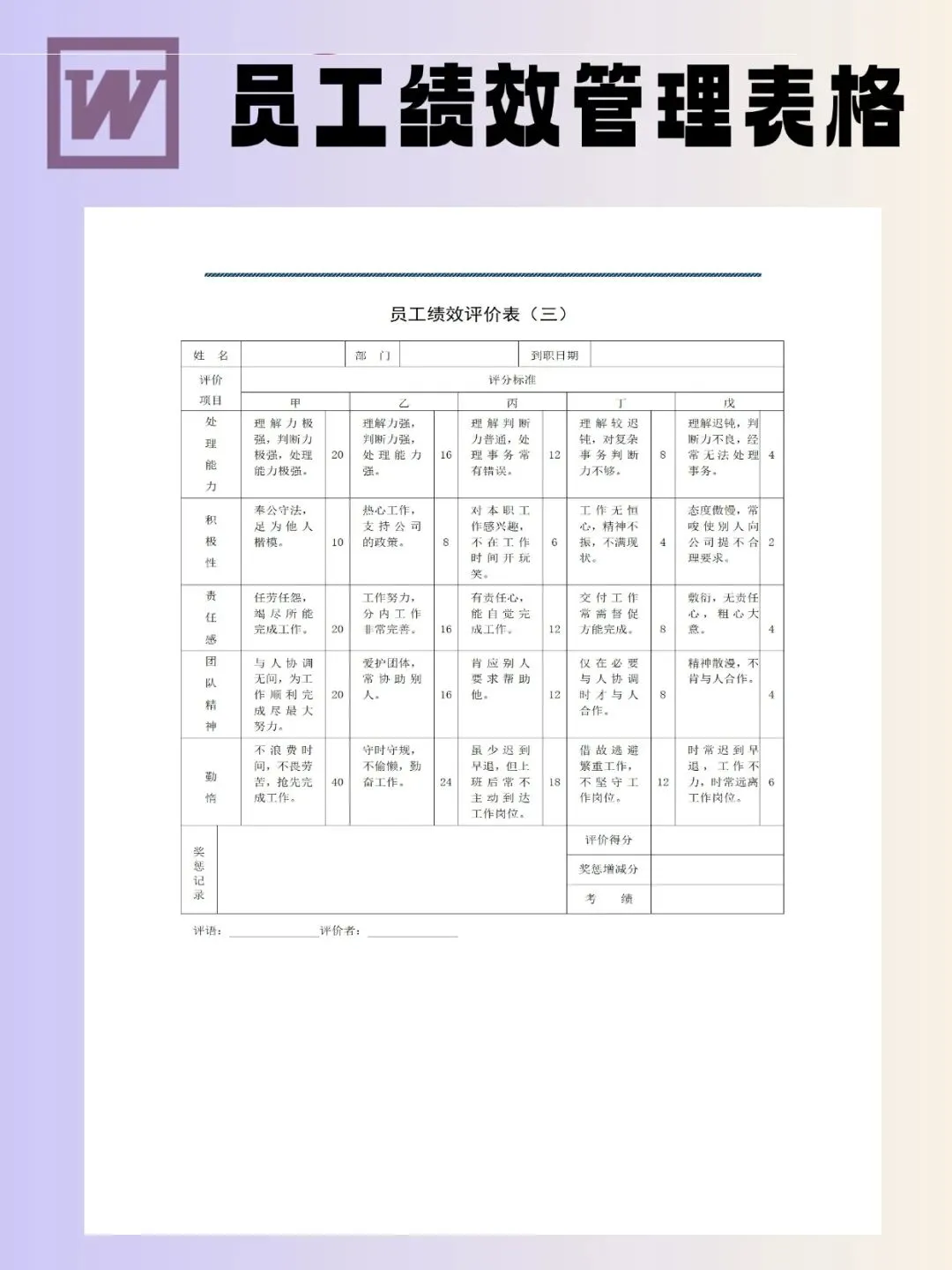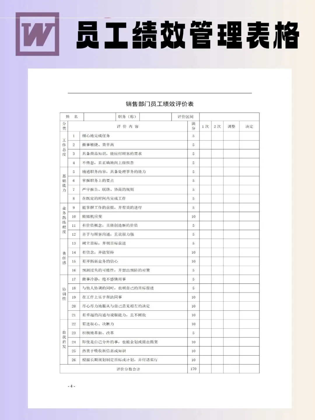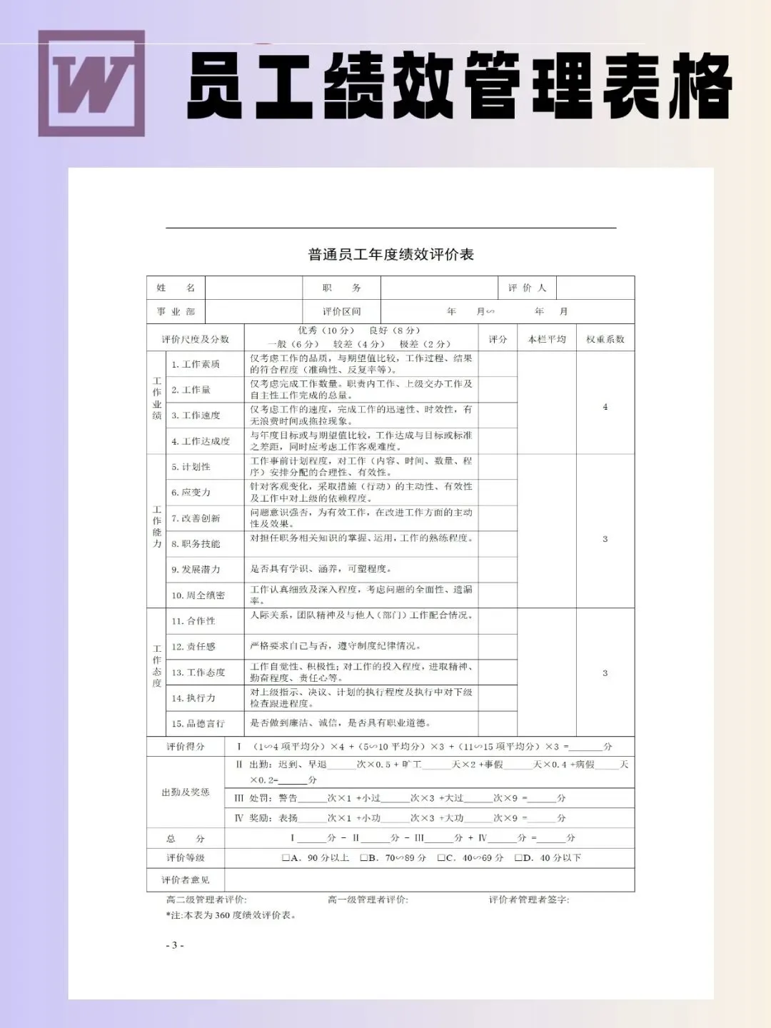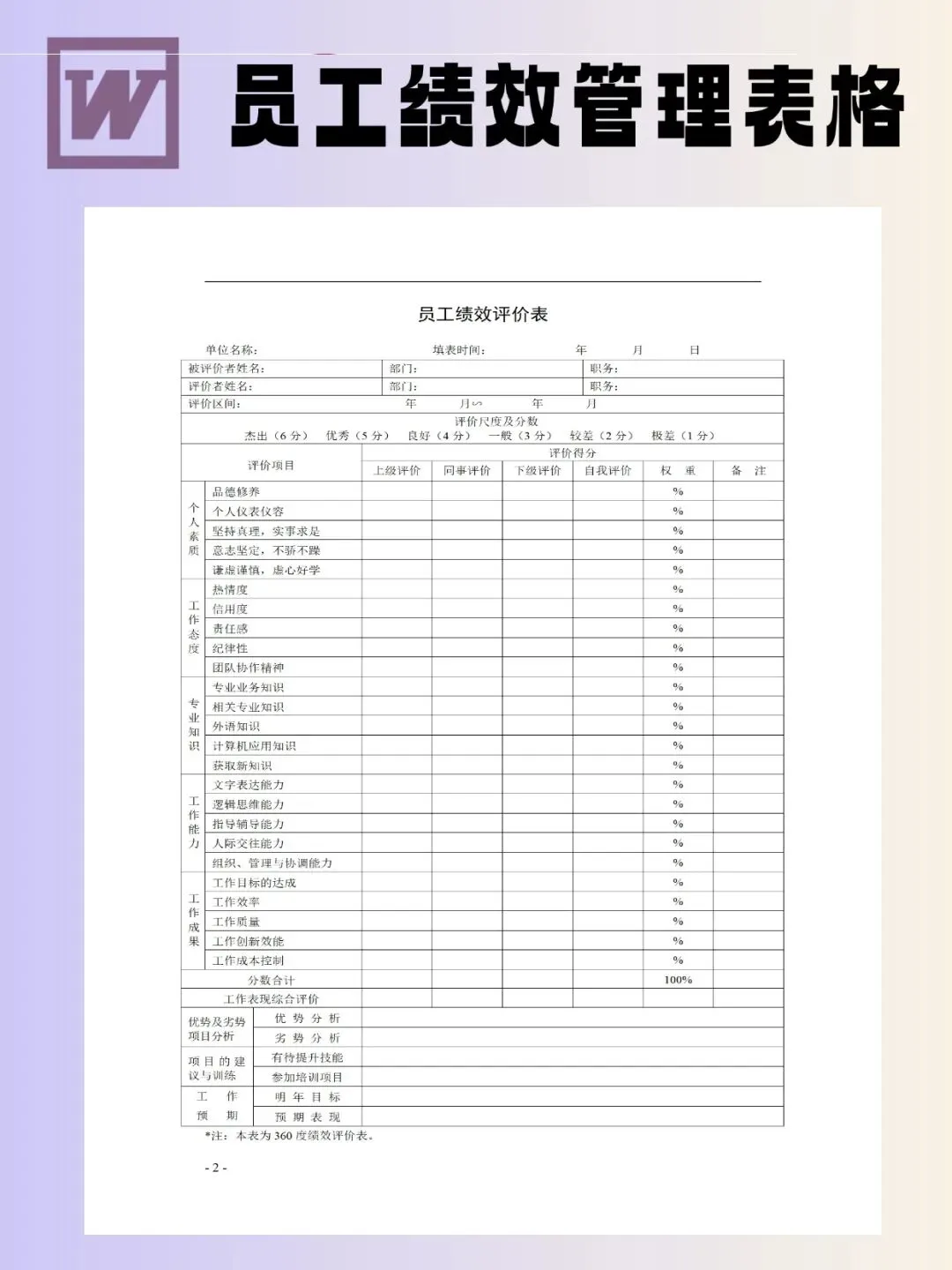 100个员工绩效管理表模板可编辑word文档