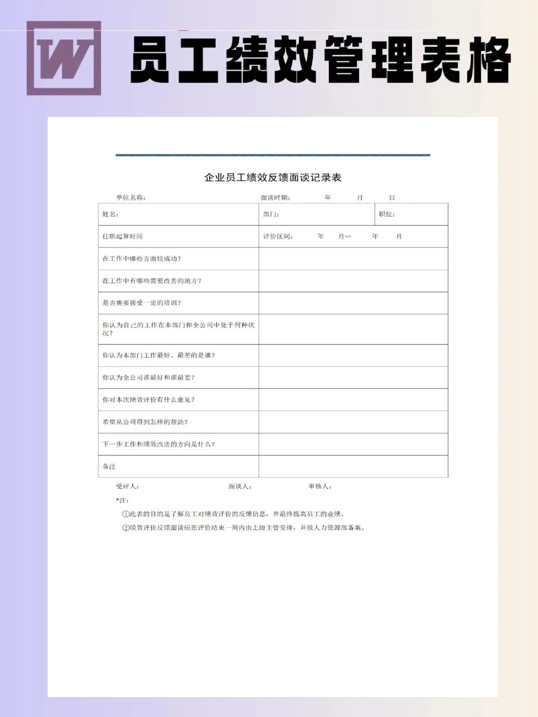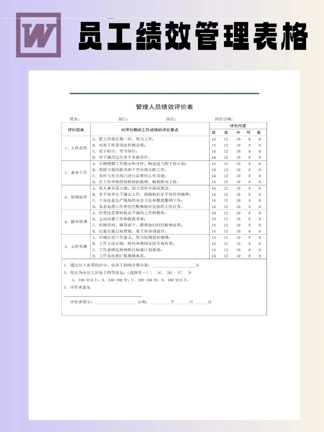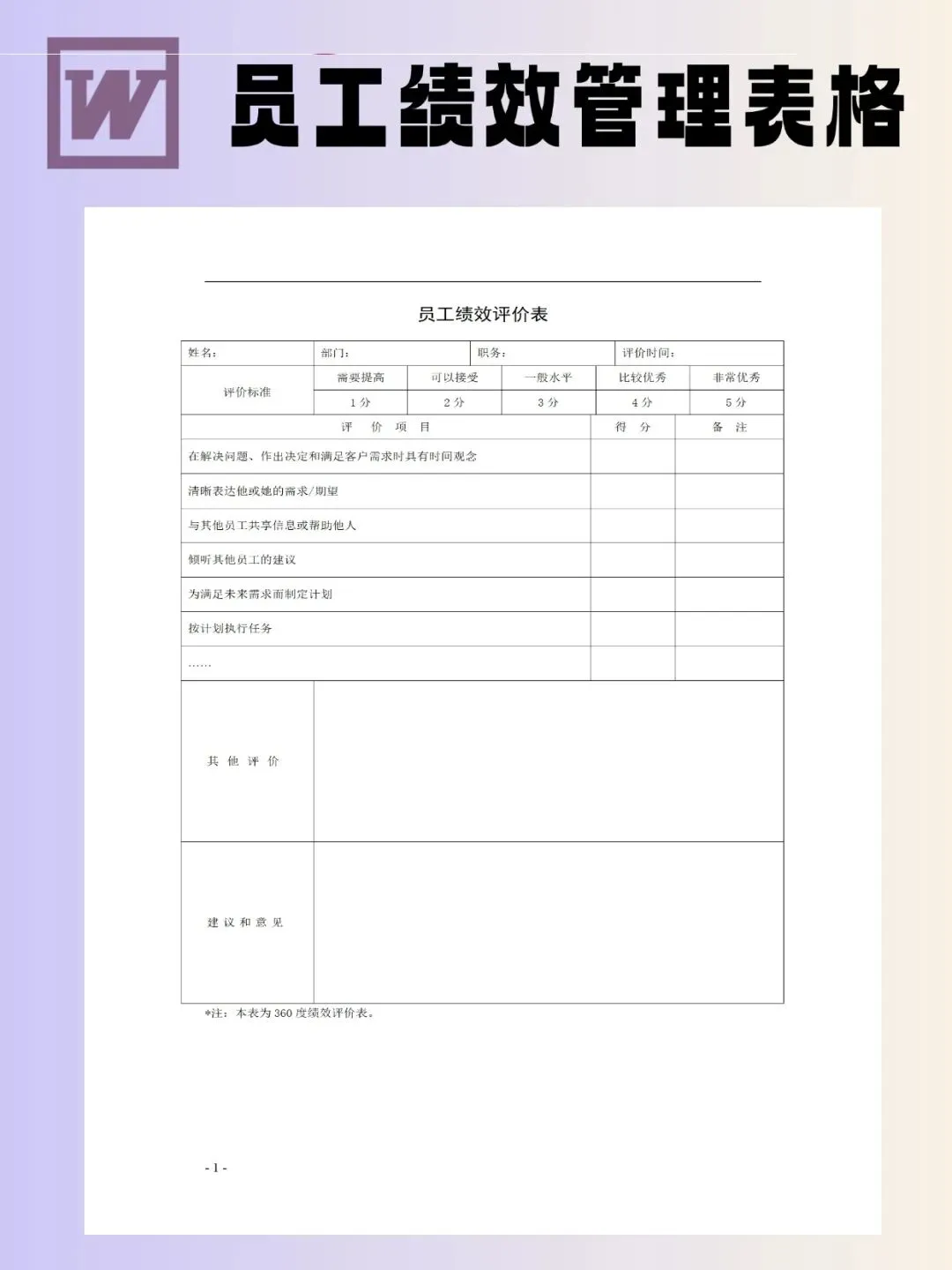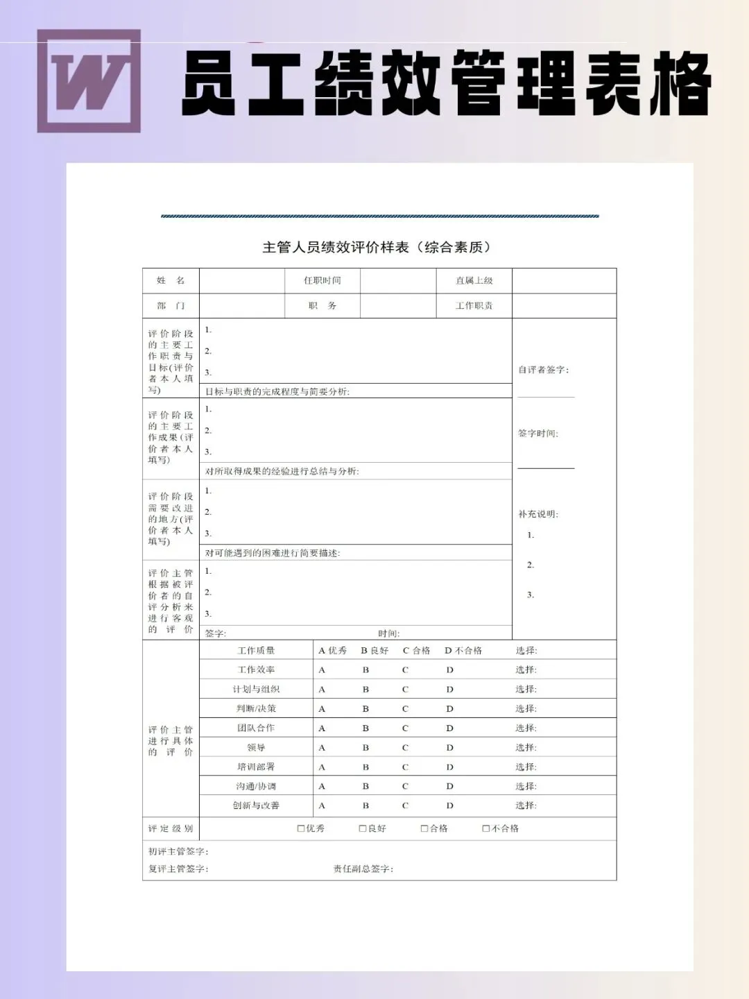 100个员工绩效管理表模板可编辑word文档
