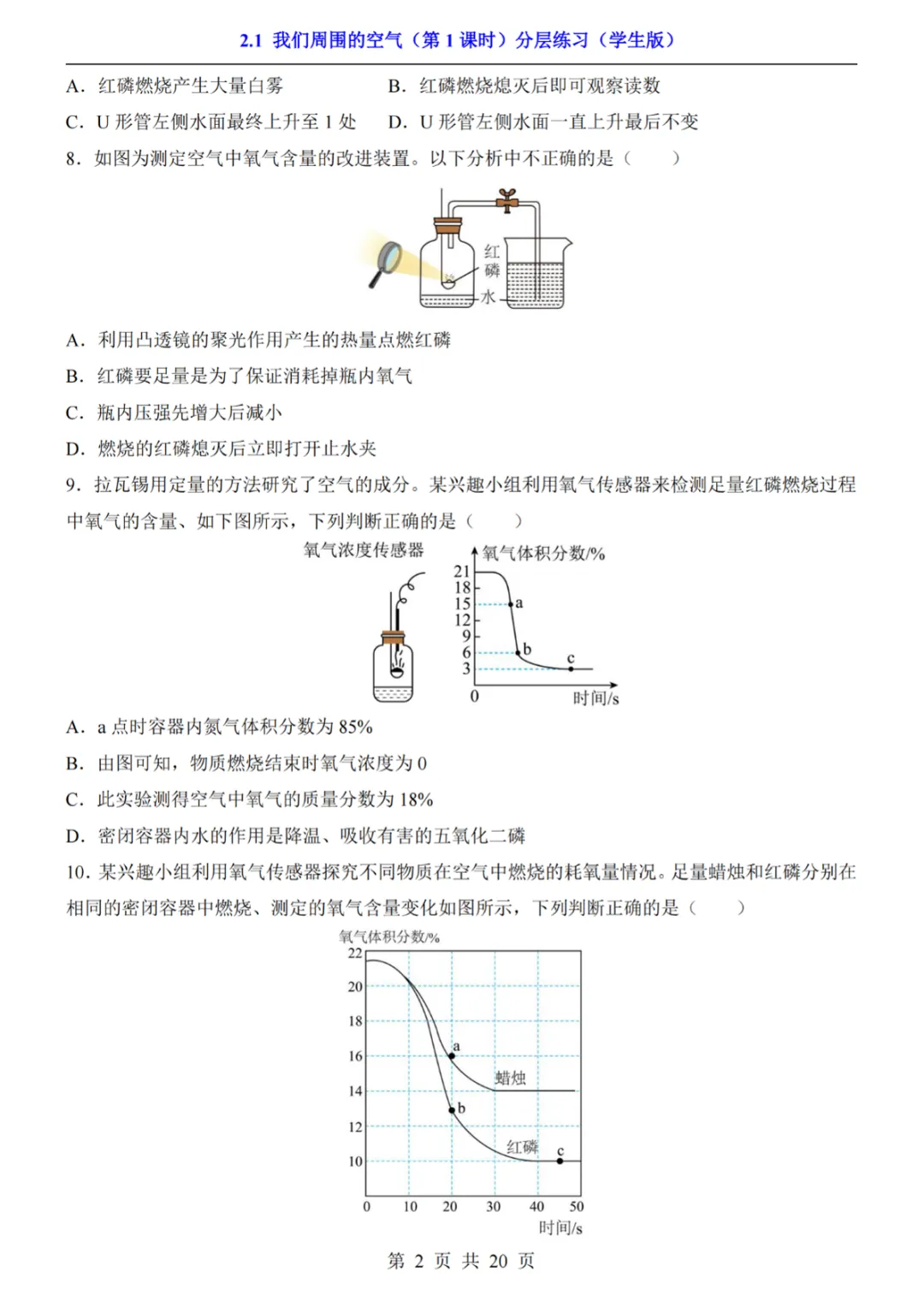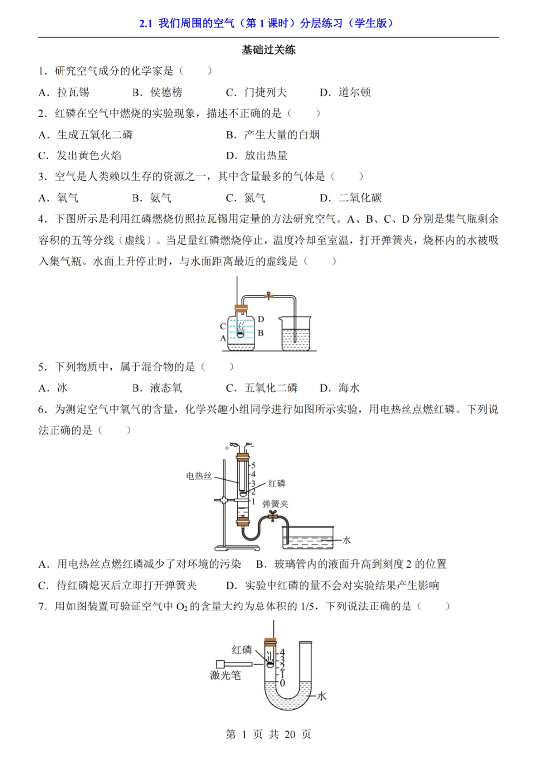【免费下载】八年级(全1册)化学2.1我们周围的空气第1课时(人教54版),PDF电子版,共20页,可打印