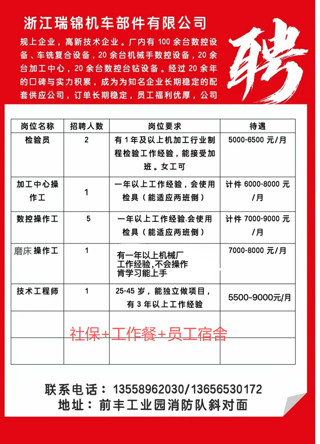 诚聘:机加车间检验员