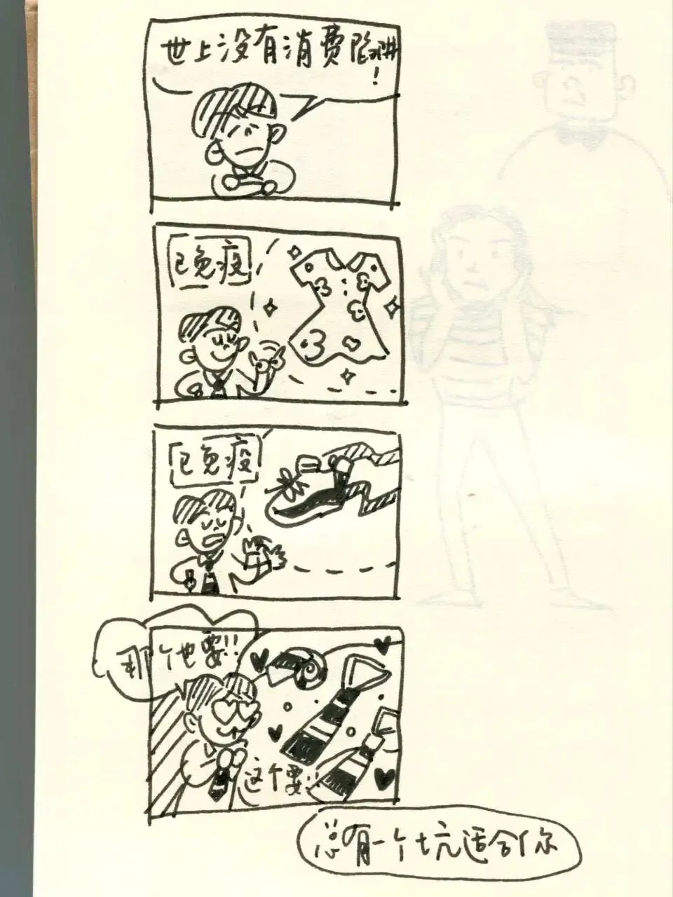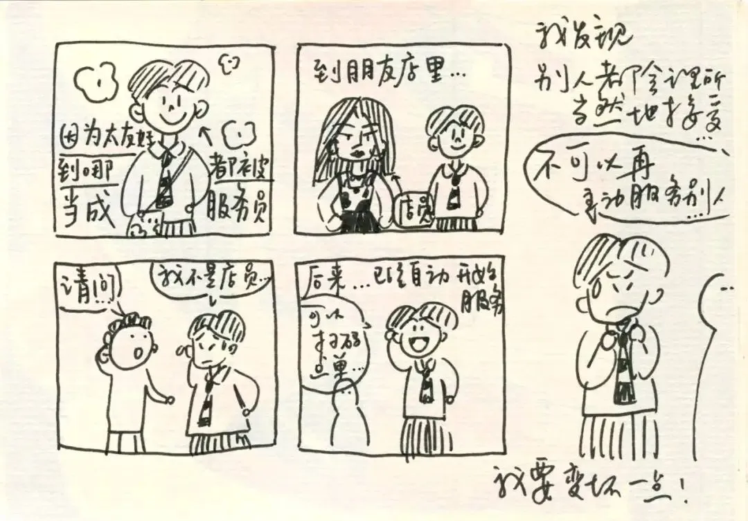 之前我总和自己说:“不行,不可以一直画四格漫画,要进步,要画那种很厉害很有深度的作品才可以。”