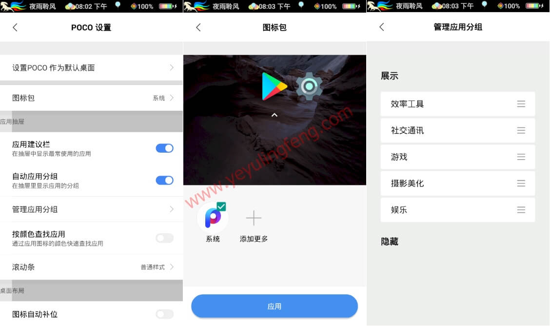 POCO桌面是小米在国外推出的系统桌面,风格偏向原生功能也很简洁实用,为了拓展海外的市场可是下了一番功夫产品做的确实可圈可点,完美支持MIUI10系统,可实现手机桌面分屏多开、自定义桌面图标、桌面图标美化等功能。而国内用户用的MIUI还或多或少有点广告,此次的POCO桌面目前已经上架了Google play 应用商店,国内用户暂时无法通过官方途径下载,因为环境特殊老夜这里直接提供最新版的Poco桌面下载地址。