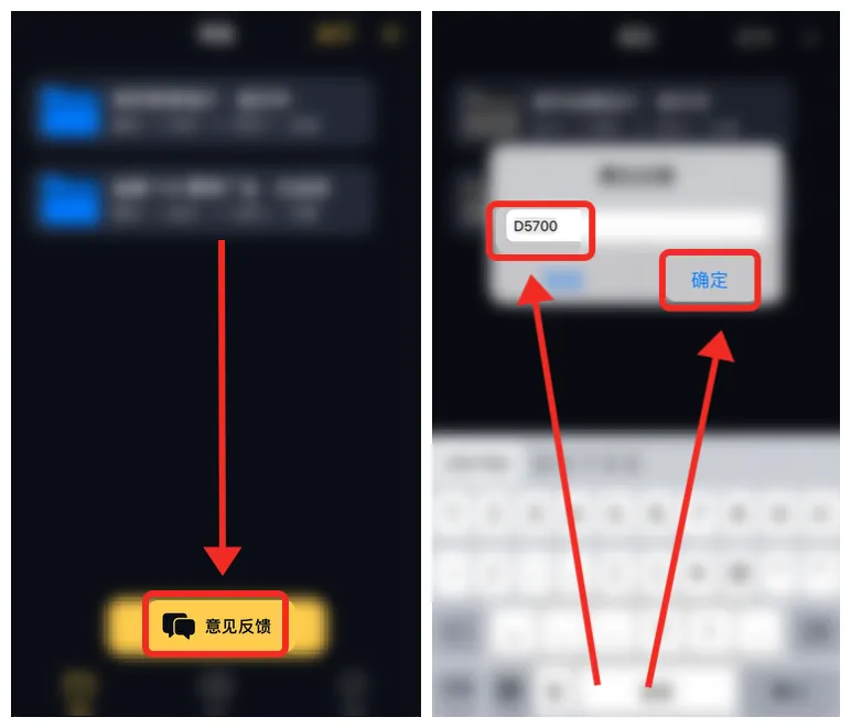 允许网络权限,按图依次点击,输入关键词:“D5700”,点击搜索,手动清后台或等待自动变身,再次启动软件即可完成变身。