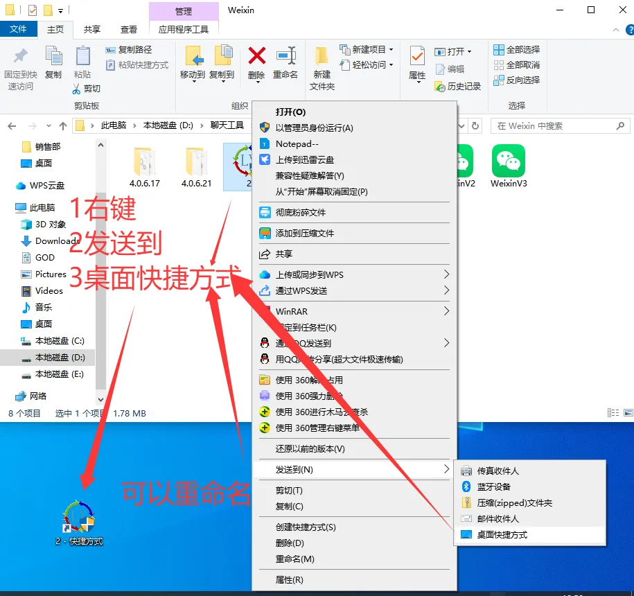 右键桌面微信