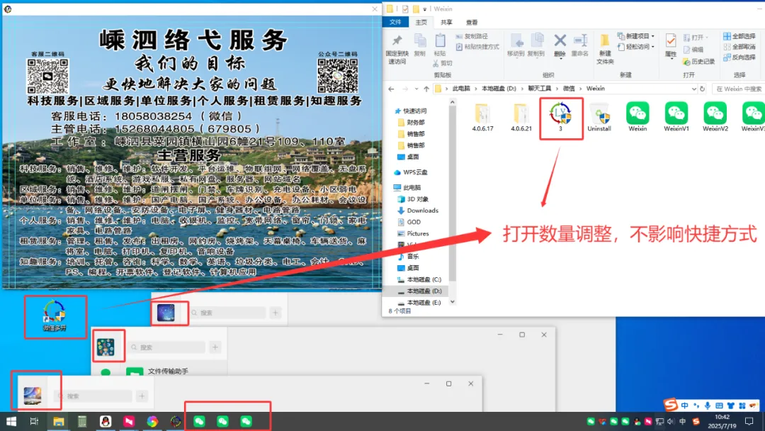 修改后双击打开下载文件,任务栏出现对应数量的微信登录界面。