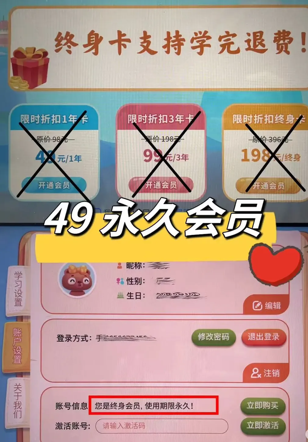 划重点:49元是永久会员,没有二次收费;更贴心的是——学完就能退!