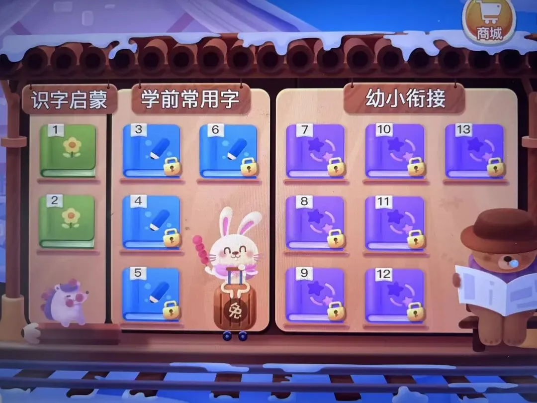 软件包括1300字+2000词,覆盖学前到幼小衔接,分为「识字启蒙」「学前常用字」「幼小衔接」三个阶段,从简单到难,每个字都配2-3个词语+生活场景例句。