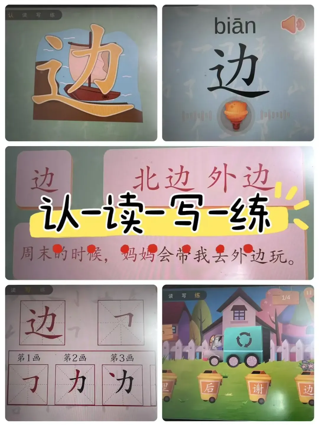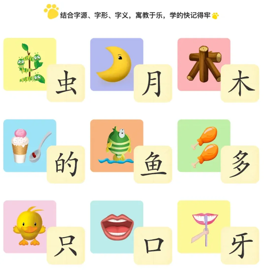 每个字包含【认-读-写-练】四个环节,结合形象的动画,有趣的测试游戏,帮助记忆。