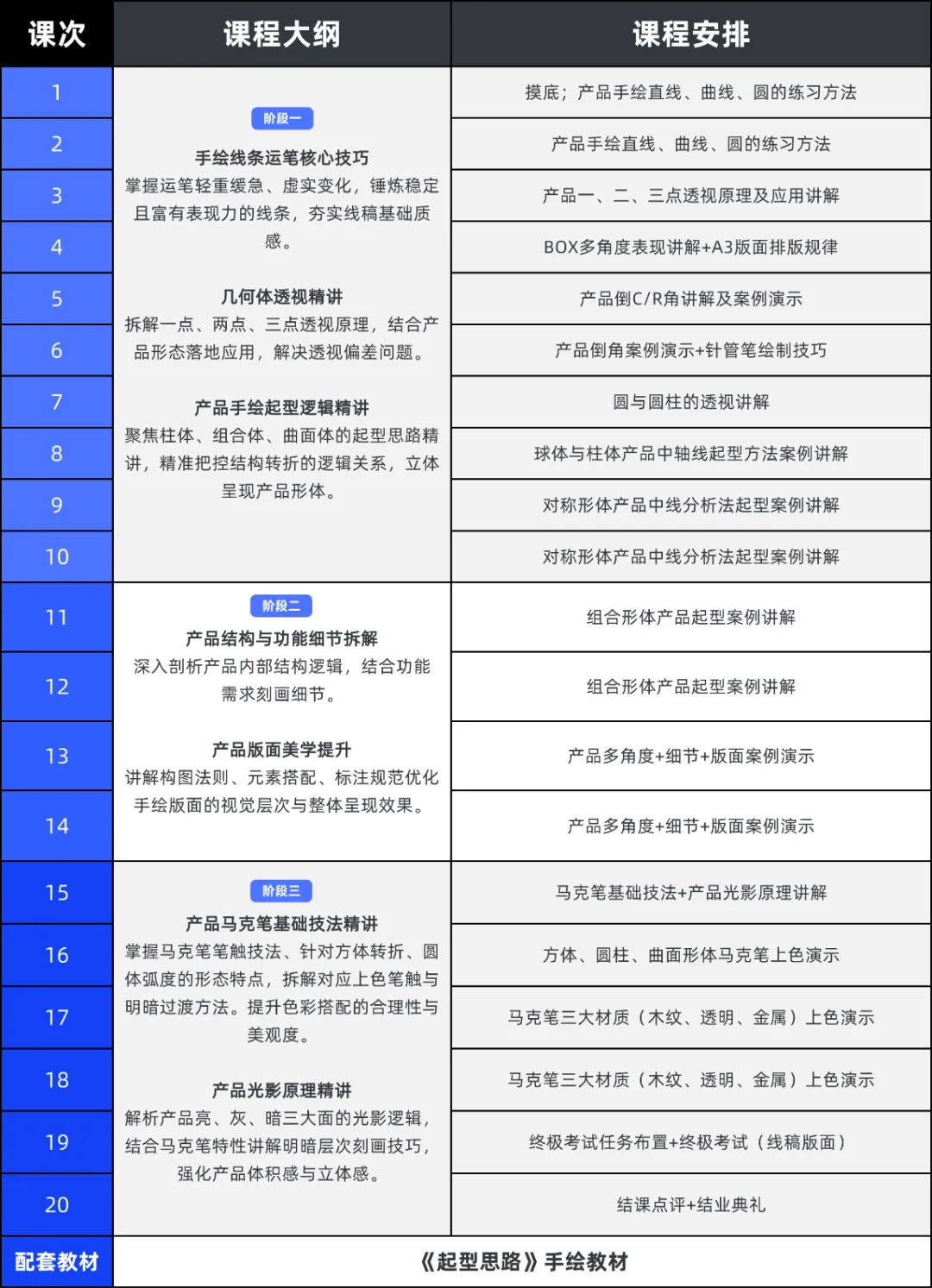 工业产品设计手绘基础班专项课程一览