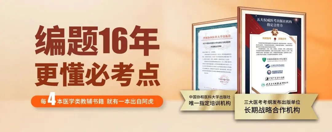阿虎医考已有18年编题经验,和五大医考考纲指导用书出版单位保持良好的战略合作关系。