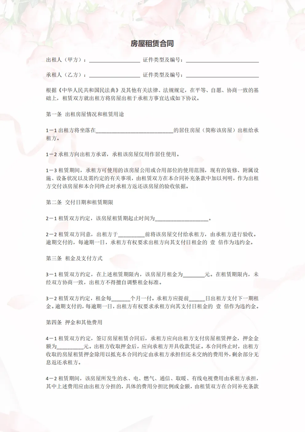 房屋租赁合同模板(word电子版)个人房屋出租合同,可下载打印可修改 房屋交割清单/家具家电清单/租赁安全责任协议/押金条