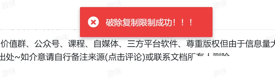 点击”破解复制“按钮,看到页面弹出成功提示后,你就可以自由选中和复制文档里的任何内容了。