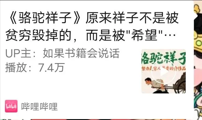 我之前从哔哩哔哩看到《骆驼祥子》讲解视频,想下载下来。