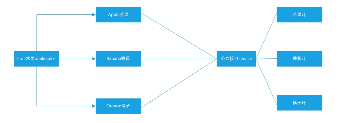 公共接口service就是多态的体现,随着传入水果对象的不同,能返回不同的结果。