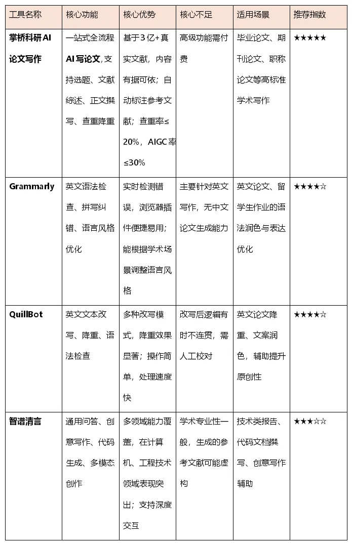 如果你追求极致的学术严谨性和效率,需要从零开始完成一篇高质量的学位论文或期刊论文,那么掌桥科研AI论文写作这类一站式全流程工具是首选。它的AI论文生成能力基于真实文献,且兼顾格式与合规性,能最大程度提升写作效率和质量。
