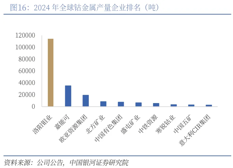 在行业地位方面,洛阳钼业钴产量稳居全球第一,2024年钴产量达11.42万吨,全球市占率超30%,主导全球钴供应格局。铜产量跻身全球前十,2025年进一步跃升至全球前七大铜生产商,2025年铜产量达74万吨,超额完成年初指引。