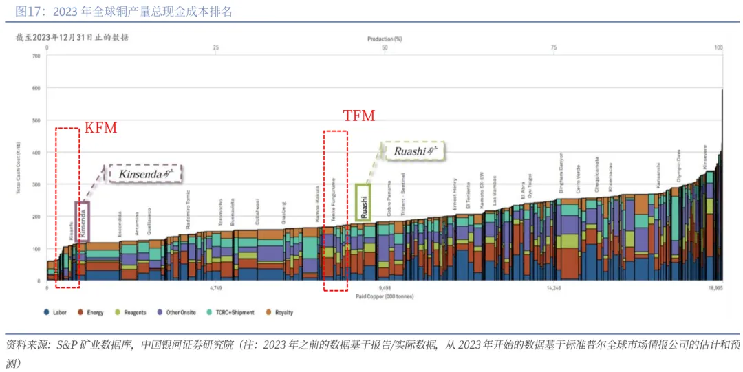 成本端更是优势显著,TFM铜钴矿综合运营成本进入全球铜行业30%分位,KFM矿山成本更是跻身前10%分位。
