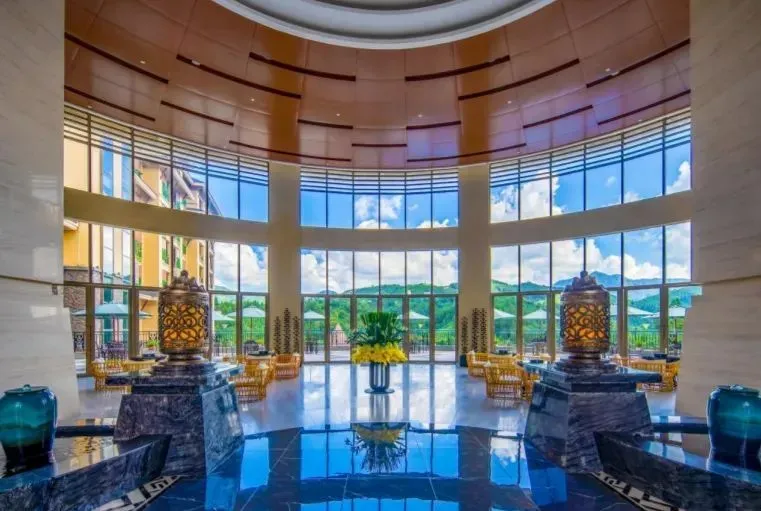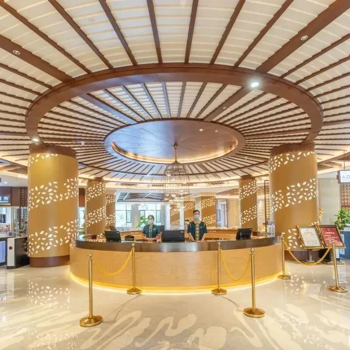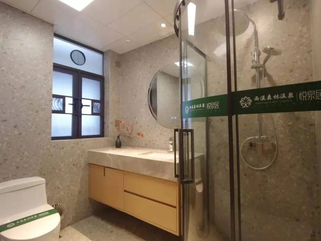 宽敞豪华大气的温泉接待大堂、特产超市、时尚泳装超市、机动游戏区、更衣区、冲凉房等一应俱全,共有1255个更衣柜、70个冲凉位,日接待能力达3000人次以上。