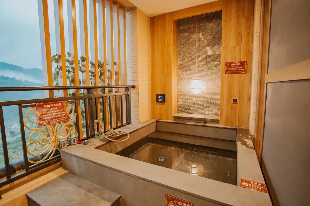 能够让人一边遥望着大山,一边浸泡温泉,一边玩水