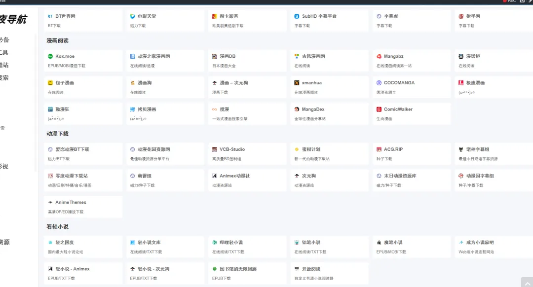 还有动漫小说分类,有动漫资源、漫画资源、小说资源,一大堆站点,想看什么就看什么。