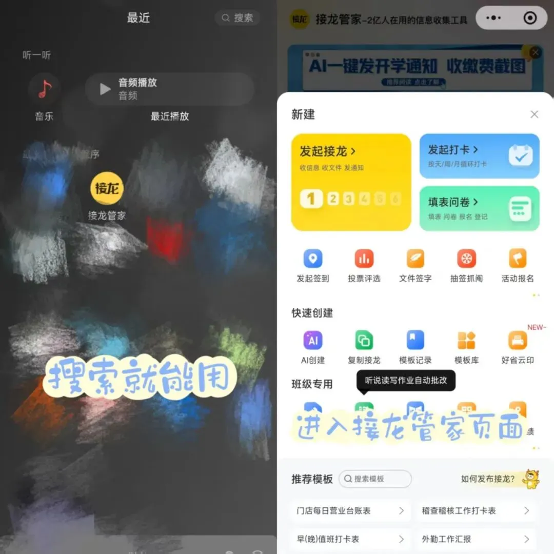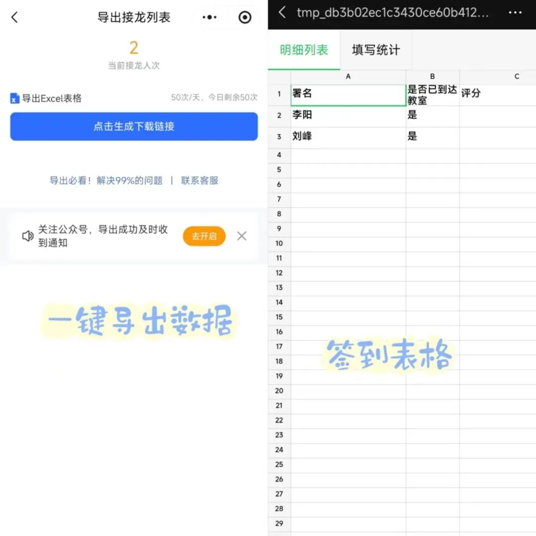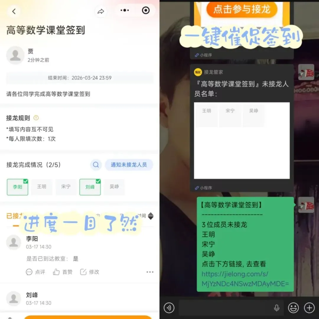 课后手动核对名单,班委得花半小时整理,还容易出错。要是你也被这些问题困扰,接龙管家必须安排上!