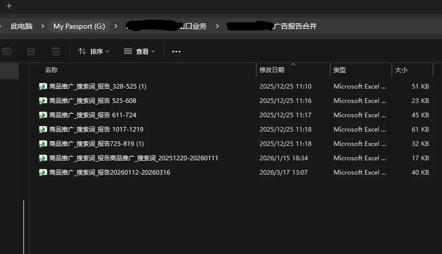 将所有需要合并的 Excel 文件放入同一个文件夹内(确保它们的表头名称和顺序一致)。