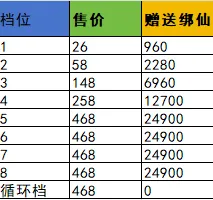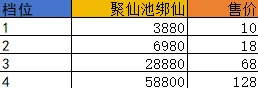 2.玩家在”直购“活动中每购买一次礼包,系统就会在”聚仙池“中生成一笔绑仙额度,于次日0点开放全服购买(售完即止)。在”聚仙池“中符合条件玩家可用超低价格来获取海量绑仙,活动共分4档,且第四档无购买次数限制!(1、2、3档每日仅可分别购买1次)