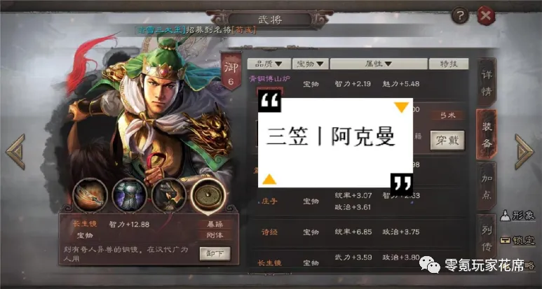 单统帅属性11.44+沉重15统帅属性,虽然减少了5速度,但是26.44统帅属性堪称极品,直接给周泰增加2.6红的属性值。