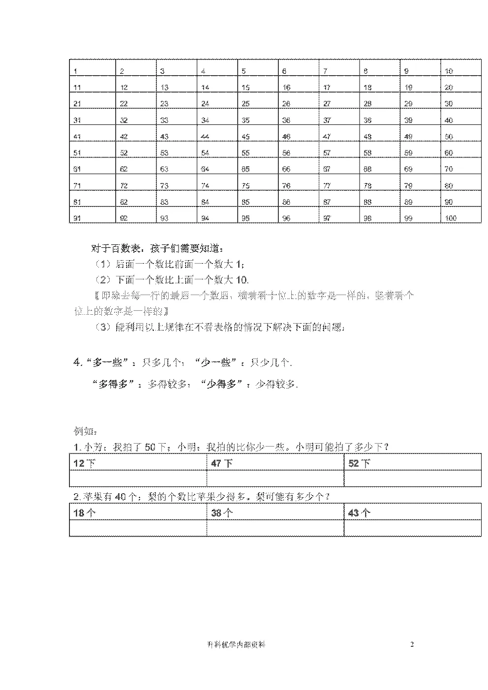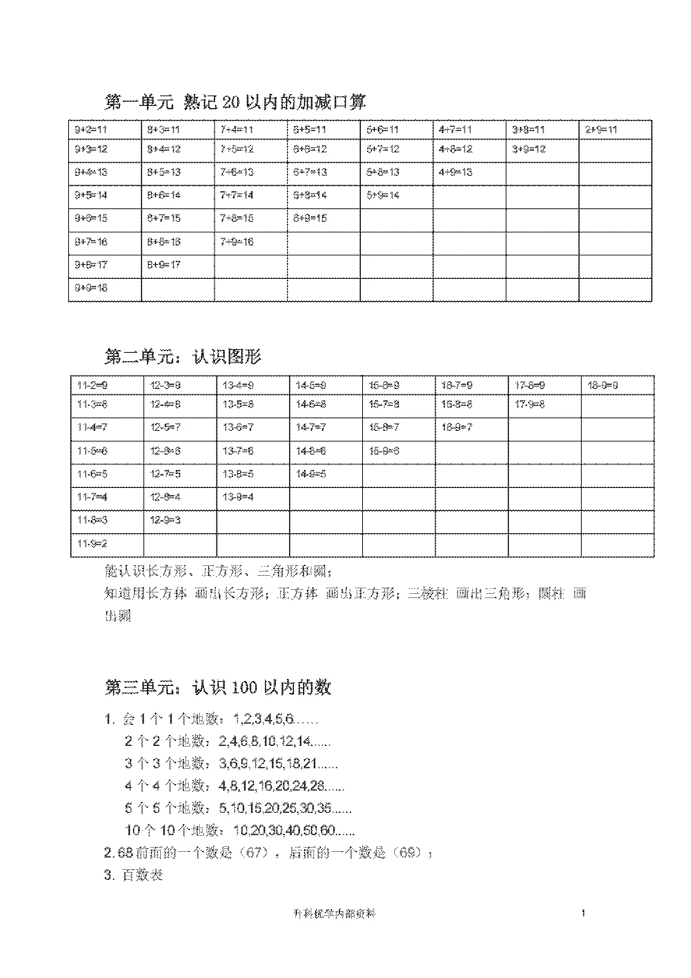 苏教版一年级下学期数学知识点(文档末下载)
