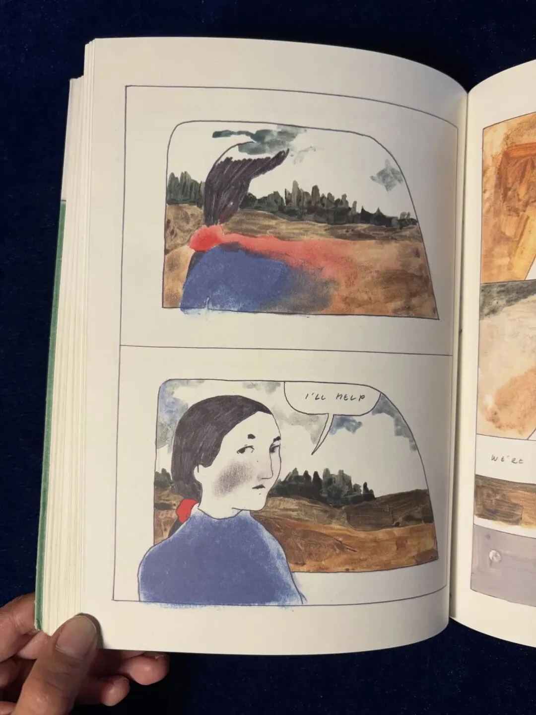 漫画《螺旋和其他故事》第三章的开端,山铺展在纸面,作者艾迪·科赫运用水彩颜料泼洒出山的连绵起伏。有的地方高,有的地方低,有的地方浓郁,有的地方平淡,笔触晕染开来,宛如山峦天然的褶皱。